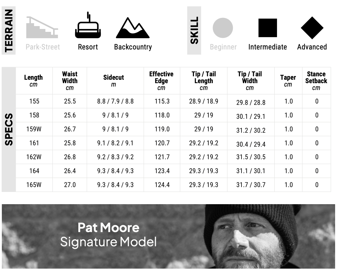 La Coda es la tabla estrella de Arbor para todo tipo de terrenos, preparada para el rendimiento. Su perfil camber direccional, sumado a los puntos de contacto Grip Tech, permite giros limpios a alta velocidad en condiciones mixtas. Inspirada en las largas travesías de Pat Moore, esta tabla está lista para el centro de esquí, el backcountry y los desafíos slack-country.